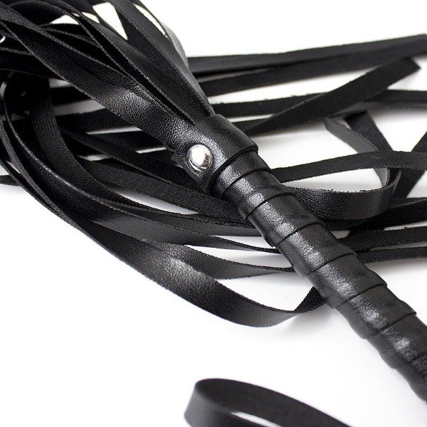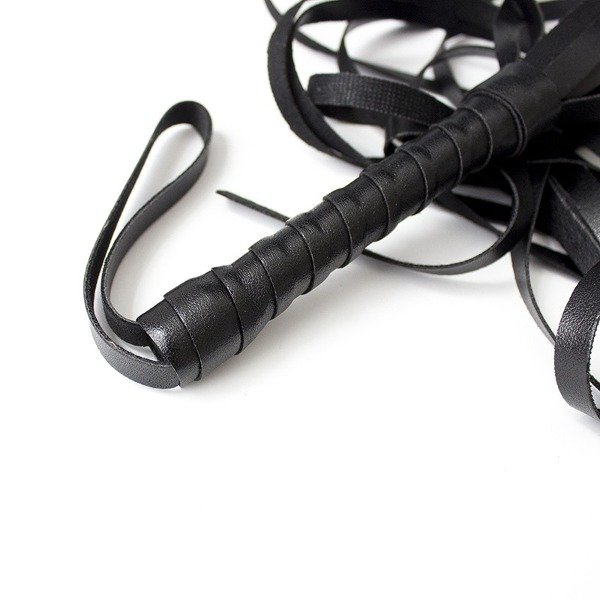 Látigo de cuerpo con mango largo y sujetador. Gracias al largo de su mango lograrás azotes fuertes para un castigo intenso. Excelente confección, materiales de primera calidad.
